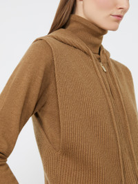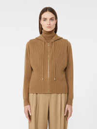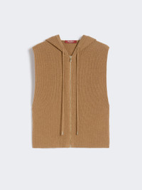 DETAILS Hooded gilet crafted from wool and cashmere yarn, featuring an all-over fisherman’s rib-knit pattern. Designed with a slim fit and refined metal detailing that enhances its functionality and style. Women's hooded gilet in wool and cashmere yarn Slim-fit silhouette Hood with adjustable drawstring Front fastening featuring metal zip with branded pull-tab Knitted drawstring with metal aglets Drawstring hem COMPOSITION AND CARE 80% wool, 20% cashmere. Hand wash cold (40°c max); do not bleach; do not tumble dry; flat drying in the shade; cool iron; professionally dry clean perchloroethylene - mild process; do not wet clean.; iron with a cloth between.; using neutral detergent. Distributed by Max Mara S.r.l., registered office in Reggio Emilia (Italy), Via Giulia Maramotti 4, 42124 (IT)