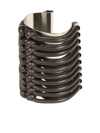 leather-inserts bracelet Highlights - Dark brown - Leather inserts - Metal accents - Rigid structure - Curved shape Made in Italy