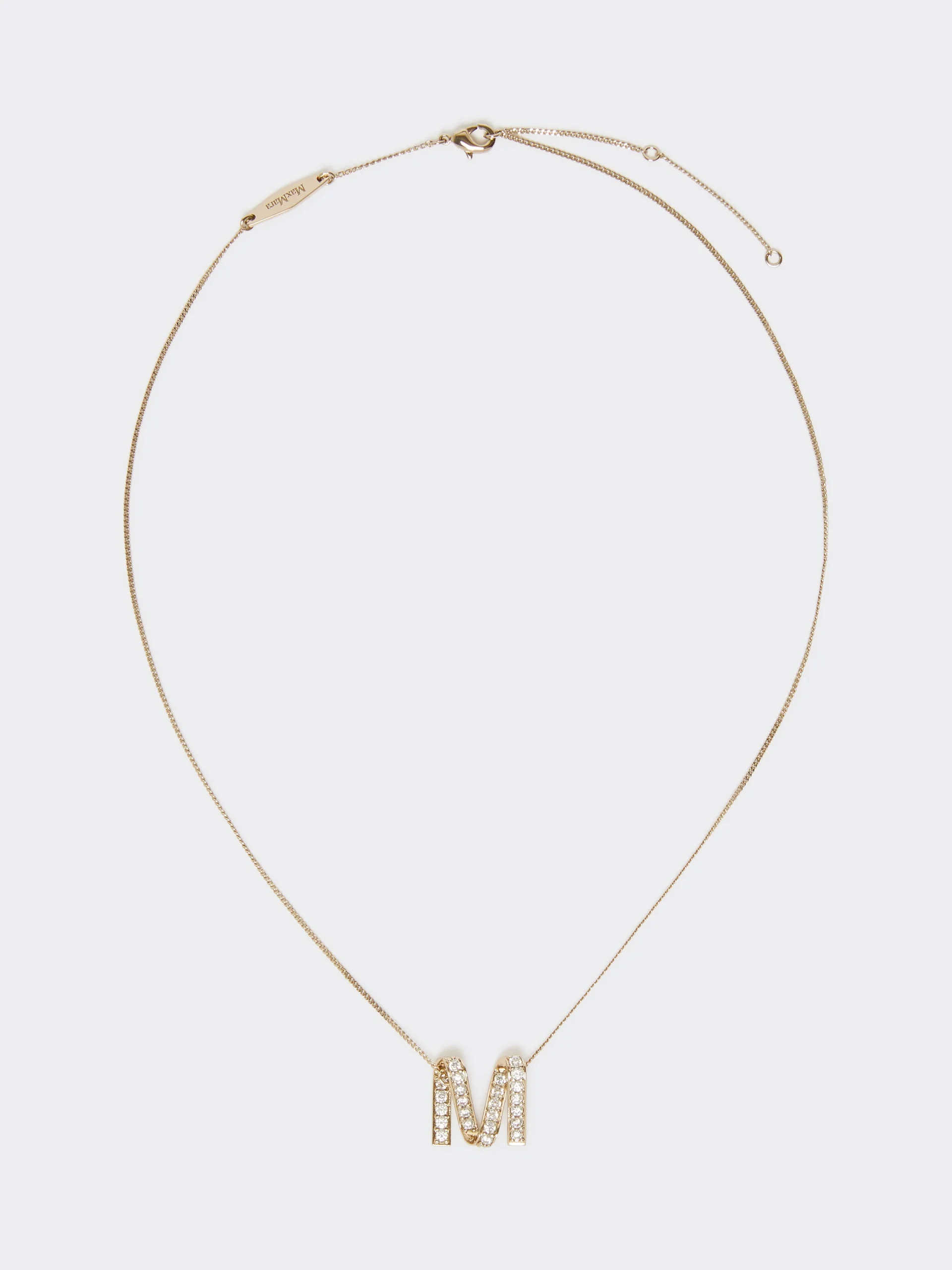 DETAILS Fine chain choker necklace with a ribbon-effect M-design pendant. Metallic necklace Pendant with rhinestone bezels Adjustable fastening with small snap-hook clasp COMPOSITION AND CARE Style in metal; with details in cubic zirconia. Distributed by Max Mara S.r.l., registered office in Reggio Emilia (Italy), Via Giulia Maramotti 4, 42124 (IT)