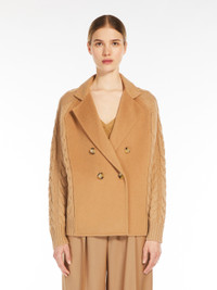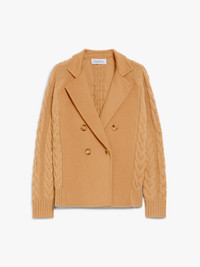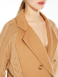 DETAILS Double-breasted pea coat jacket in luxurious wool and cashmere fabric. The sleeves and back come in a matching knit, with a combination of cabling and ribbed textures to give movement and thickness to the garment. Boxy garment with a lapel collar, ribbed cuffs and hem. Horn button fastening. COMPOSITION AND CARE Knitted fabric 70% wool, 30% cashmere; fabric 90% wool, 10% cashmere. Do not wash; do not bleach; do not tumble dry; cool iron; professionally dry clean perchloroethylene - mild process; do not wet clean.; iron with a cloth between. Distributed by Max Mara S.r.l., registered office in Reggio Emilia (Italy), Via Giulia Maramotti 4, 42124 (IT)