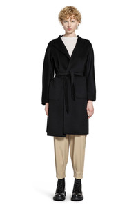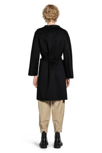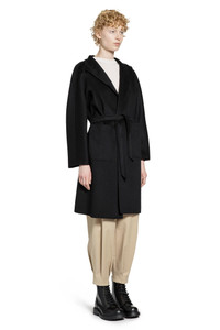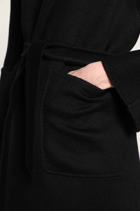 DESCRIPTION - Black - Hand-stitched pure cashmere zibeline - Stand collar - Self-tie belt - Kimono sleeves - Side pockets - Unlined - Straight fit DETAILS - Made in: Italy - Composition: 100% Cashmere - Model code: 2521016061600 004 - Item ID: 9824070959446 SIZE & FIT Model wears size 38 Model Height 180 cm Bust 82 cm Waist 58 cm Hips 90 cm