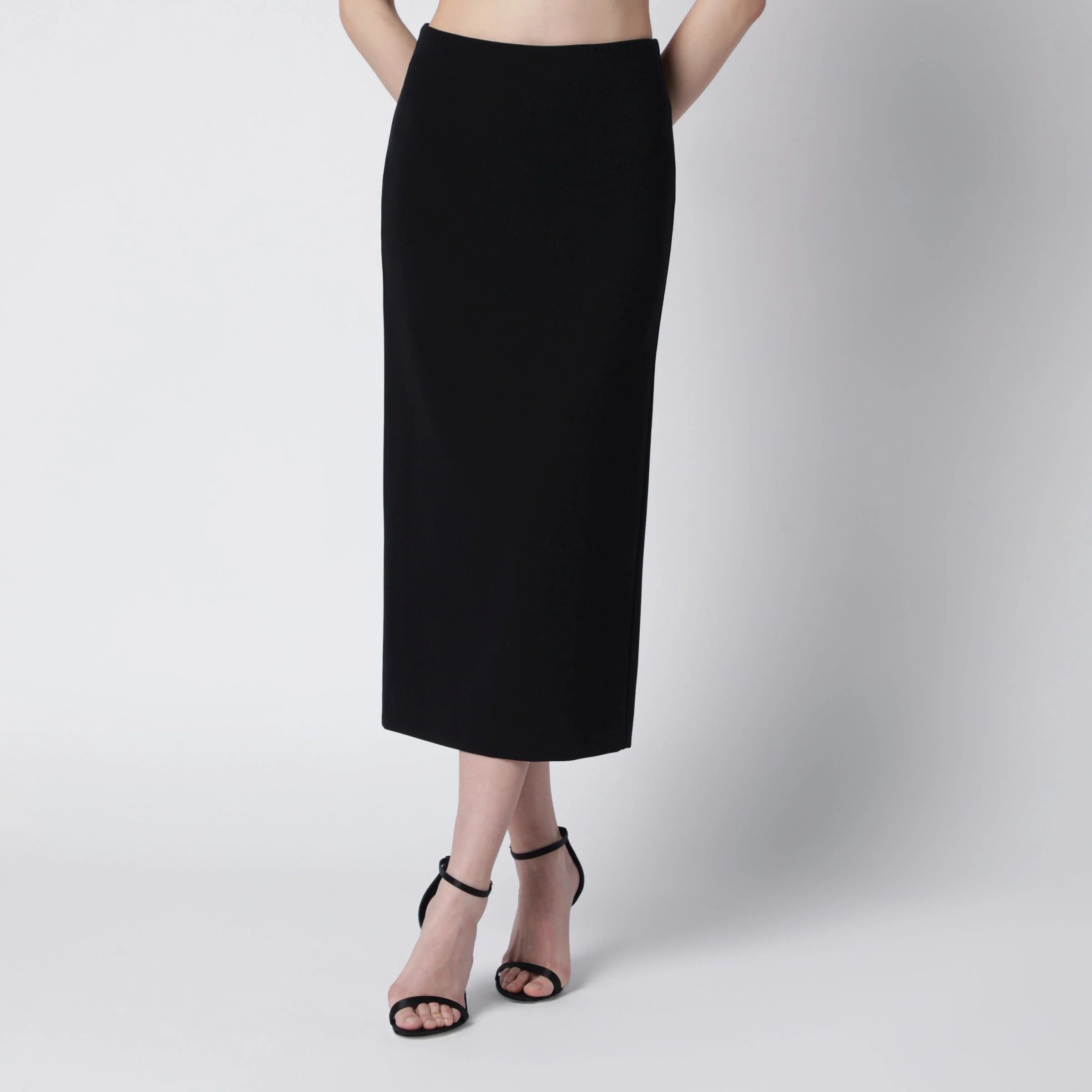 Midi skirt by Max Mara in compact crepe jersey• Color: Black• Slim fit• Invisible zip fastening on the back with customized puller• Central slit on the back• Lined in stretch fabric