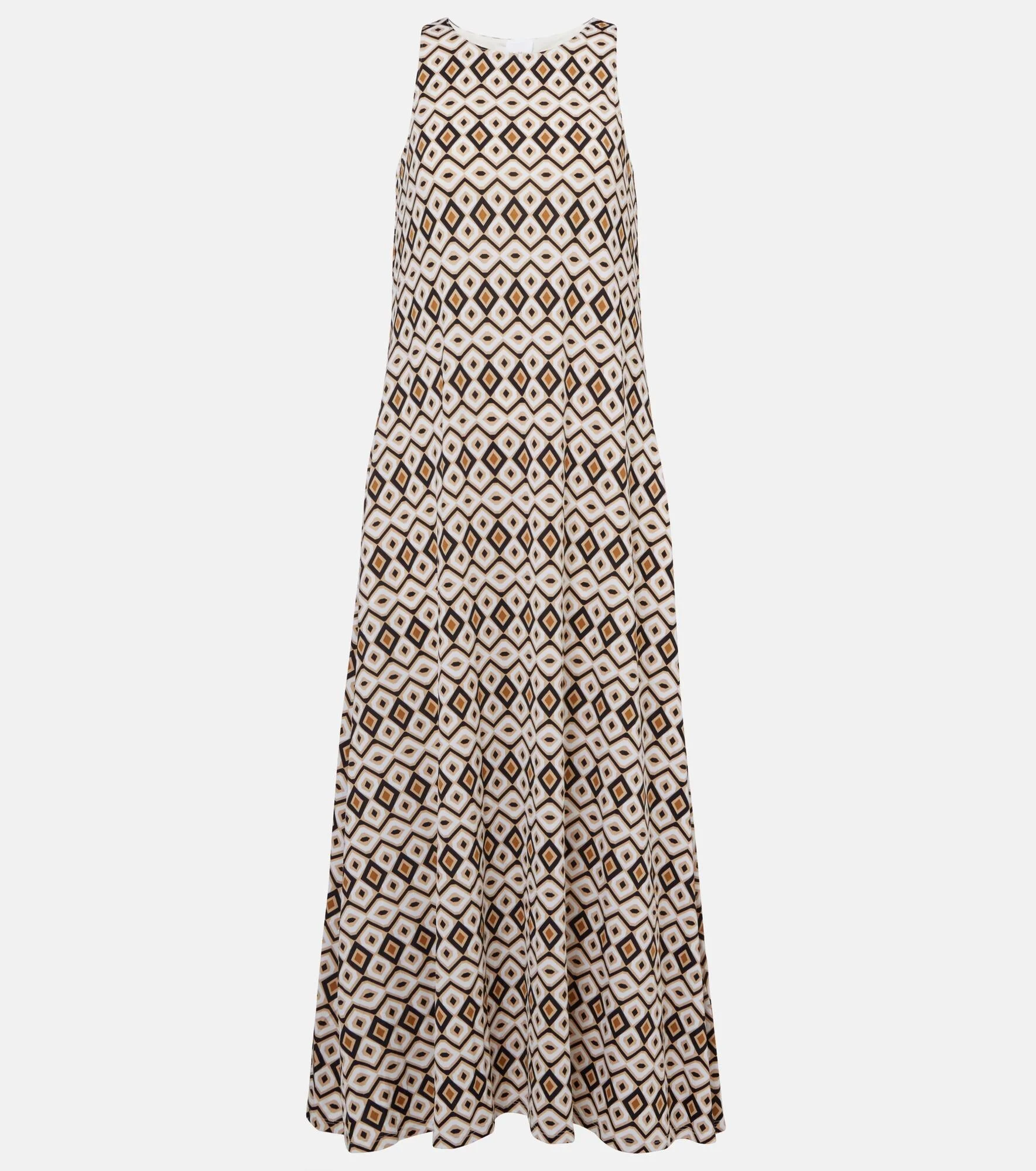 Boasting a rich manufacturing history, Max Mara represents the quintessence of Italian sophistication and expertise. The Miki maxi dress features a striking print all over and is cut to a relaxed silhouette. Product Details - Material: 93% viscose, 7% elastane - Care instructions: machine wash at 30 degrees - Made in Tunisia - Designer color name: St. Geometrica - Item color: brown, beige, multicolor - Lining: 95% viscose, 5% elastane - Item number: P01035652 Size & Fit - True to size - Designed for a loose fit - Stretchy fabric - The model seen in the picture is 178cm-5'10" and wearing a size XS