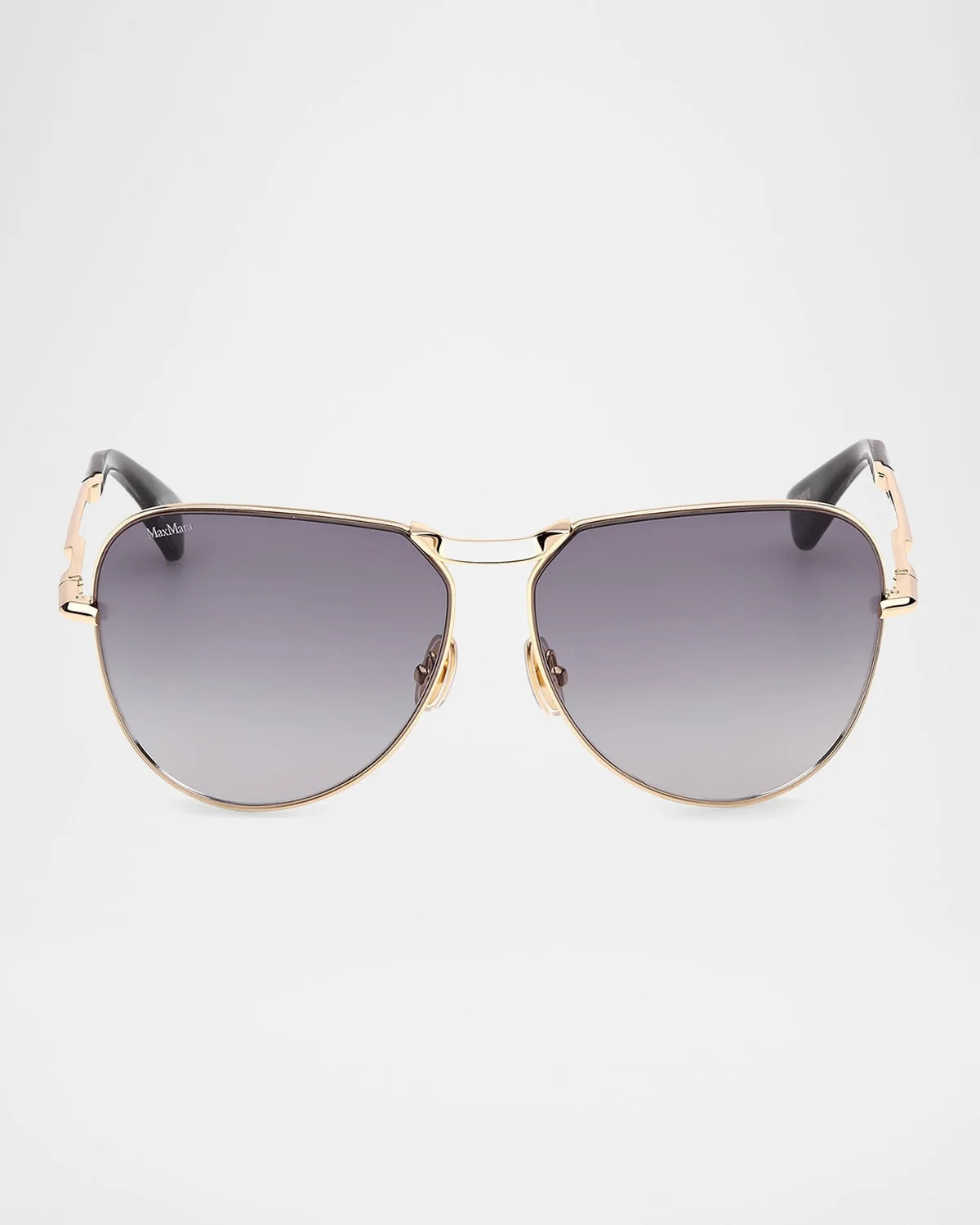 - Max Mara "Miller-2" aviator sunglasses in metal - Eye/bridge/temple (in mm): 59-13-125 - Gradient lenses - Adjustable nose pads - Logo lettering on the lens - Thin, tapered arms - 100% UVA/UVB protection - Imported - Proposition 65 warning for California residents