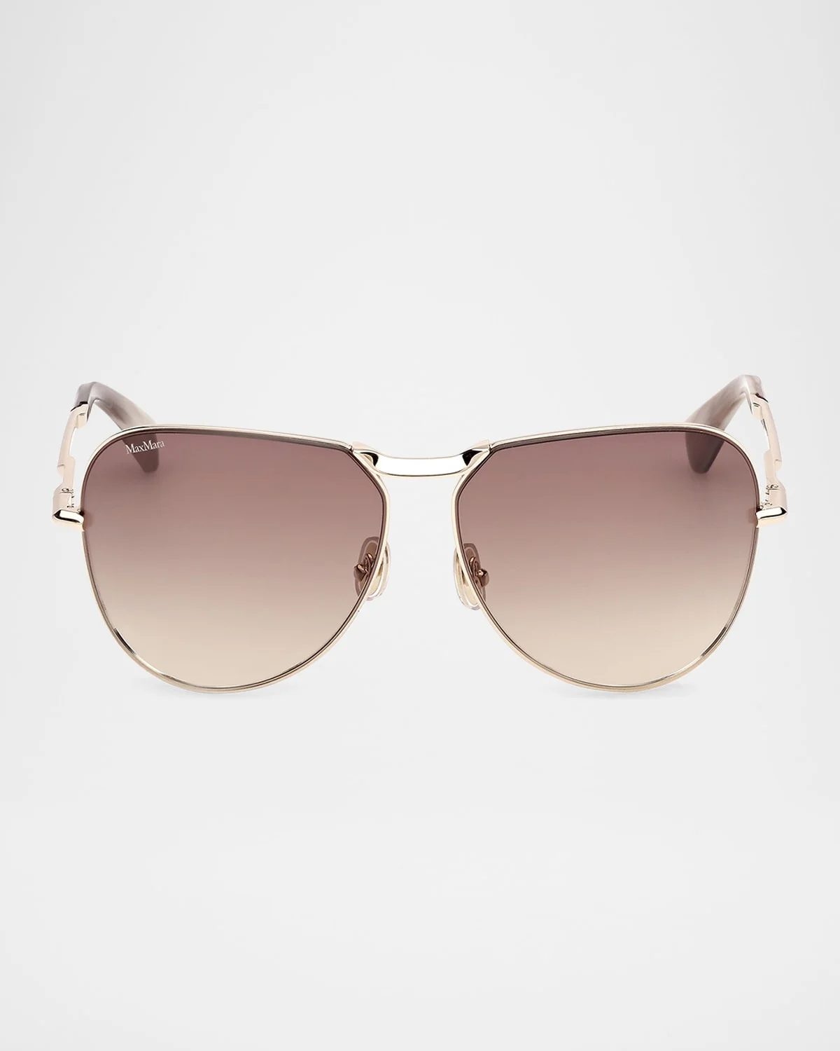 - Max Mara "Miller-2" aviator sunglasses in metal - Eye/bridge/temple (in mm): 59-13-125 - Gradient lenses - Adjustable nose pads - Logo lettering on the lens - Thin, tapered arms - 100% UVA/UVB protection - Imported - Proposition 65 warning for California residents