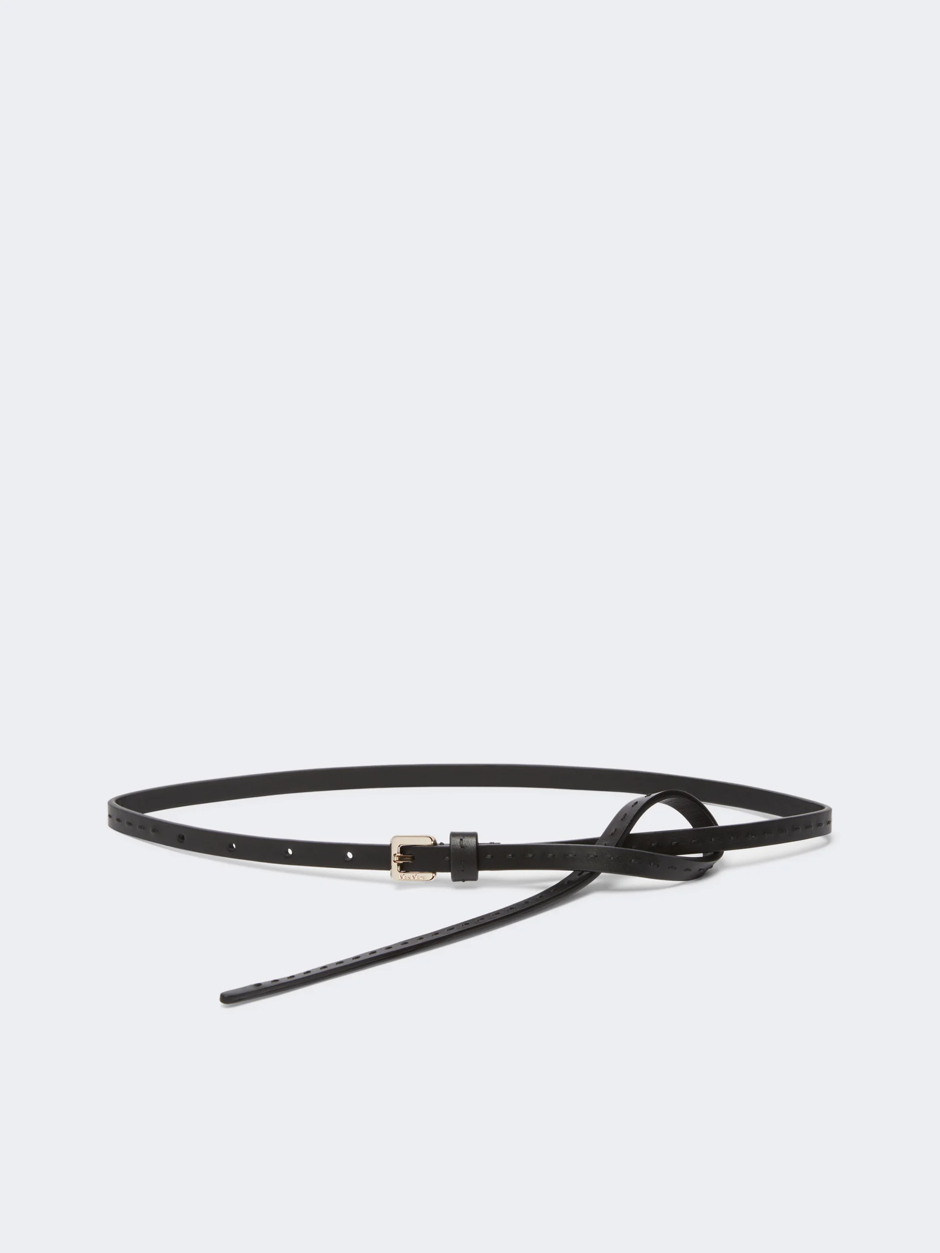 DETAILS Thin belt featuring an elongated contoured tip and single loop. Soft natural calfskin belt Metal prong buckle 1 cm wide The accessory comes in a Max Mara branded fabric dust bag COMPOSITION AND CARE Material belt calf; back calf. Distributed by Max Mara S.r.l., registered office in Reggio Emilia (Italy), Via Giulia Maramotti 4, 42124 (IT)