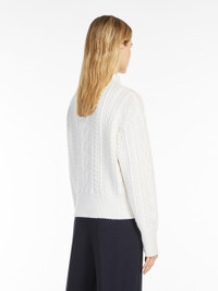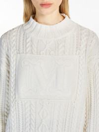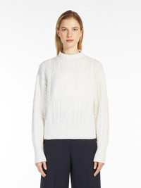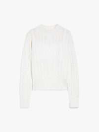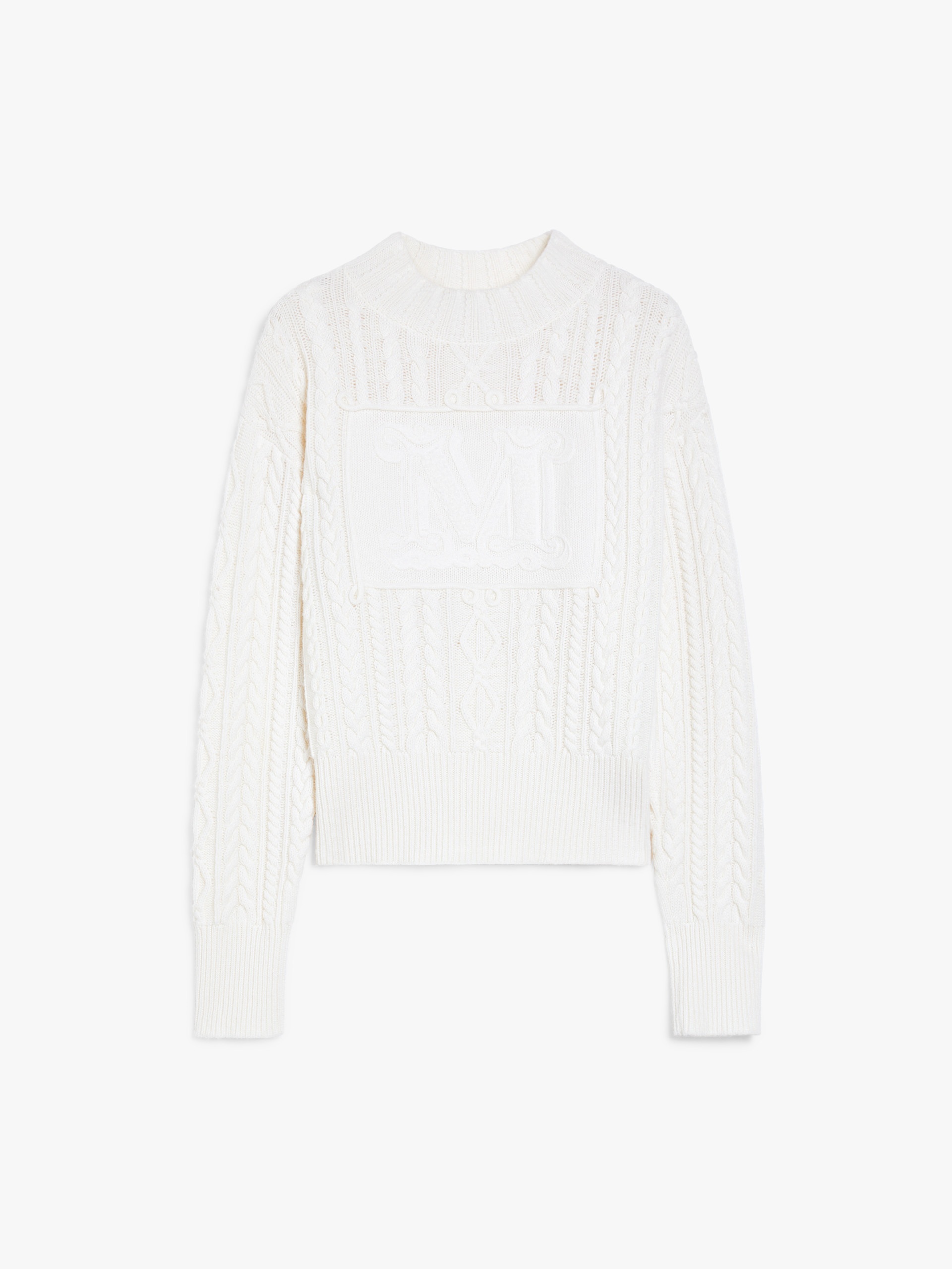 DETAILS Precise-fitting crew-neck jumper made of luxurious wool and cashmere yarn. The garment features a cable knit with diamond details and a framed by plain knit with a Cornely embroidered M Monogram motif on the front. Ribbed trim. COMPOSITION AND CARE 70% wool, 30% cashmere. Hand wash cold; do not bleach; do not tumble dry; flat drying in the shade; cool iron; professionally dry clean perchloroethylene - mild process; do not wet clean.; iron with a cloth between.; using neutral detergent. Distributed by Max Mara S.r.l., registered office in Reggio Emilia (Italy), Via Giulia Maramotti 4, 42124 (IT)
