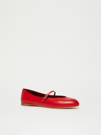 DETAILS Ballet flats in soft, semi-gloss nappa, featuring a rounded toe, almond-shaped topline, and strap on the instep with side buckle featuring metallic double M logo. Silk-satin lining and padded insole covered in leather. Sole in natural pumice leather, with non-slip M Monogram motif. COMPOSITION AND CARE Upper in lamb leather; lining in 72% viscose, 28% silk; sole in leather. Distributed by Max Mara S.r.l., registered office in Reggio Emilia (Italy), Via Giulia Maramotti 4, 42124 (IT)