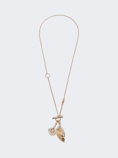 DETAILS Long necklace in fine chain, embellished with pendants in various shapes and sizes, inspired by the animal and plant kingdom. Metallic necklace Rhinestone details Adjustable to two lengths Side tag with Max Mara logo T-bar closure COMPOSITION AND CARE Style in metal; with details in cubic zirconia. Distributed by Max Mara S.r.l., registered office in Reggio Emilia (Italy), Via Giulia Maramotti 4, 42124 (IT)