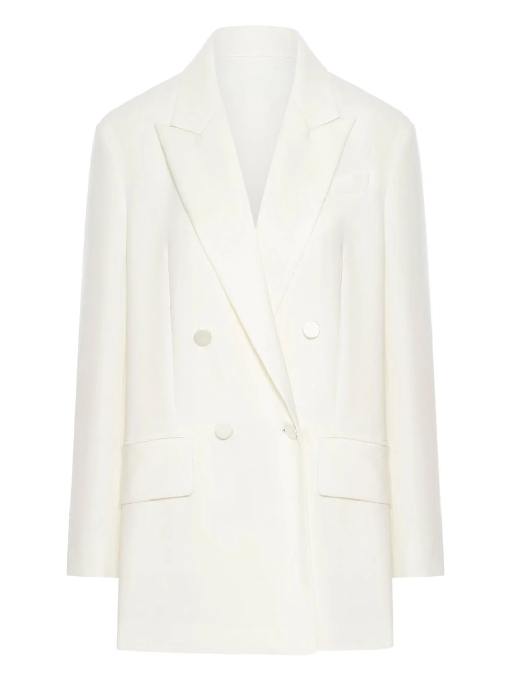 double-breasted blazer Highlights - White - Front button fastening - Long sleeves - Two side flap pockets - Buttoned cuffs Made in Italy Composition Outer: Triacetate 64%, Polyester 36% Lining: Acetate 65%, Polyester 35%