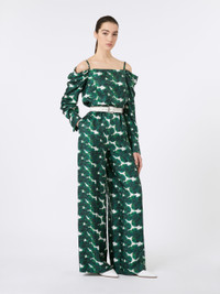 DETAILS Long wide-leg trousers. - Printed pure silk twill trousers - Elasticated waist - Slant side pockets - Pressed pleat detail COMPOSITION AND CARE Fabric 100% silk; - exclusive of decoration. Distributed by Max Mara S.r.l., registered office in Reggio Emilia (Italy), Via Giulia Maramotti 4, 42124 (IT)