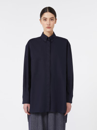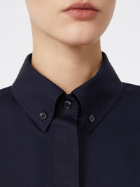 DETAILS Long, menswear-inspired shirt with rounded asymmetric hem. Lightweight pure cotton cloth shirt Loose fit Button-down collar Long sleeves with shirt-style cuffs Concealed front fastening Patch pockets on the chest Yoke seam on the back with two pleats COMPOSITION AND CARE 100% cotton. Hand wash cold (40°c max); do not bleach; do not tumble dry; line drying in the shade; cool iron; professionally dry clean perchloroethylene - mild process; do not wet clean.; wash the garment while it is fastened.; do not iron the buttons.; protect buttons before washing.; turn the articles inside out before washing. Distributed by Max Mara S.r.l., registered office in Reggio Emilia (Italy), Via Giulia Maramotti 4, 42124 (IT)