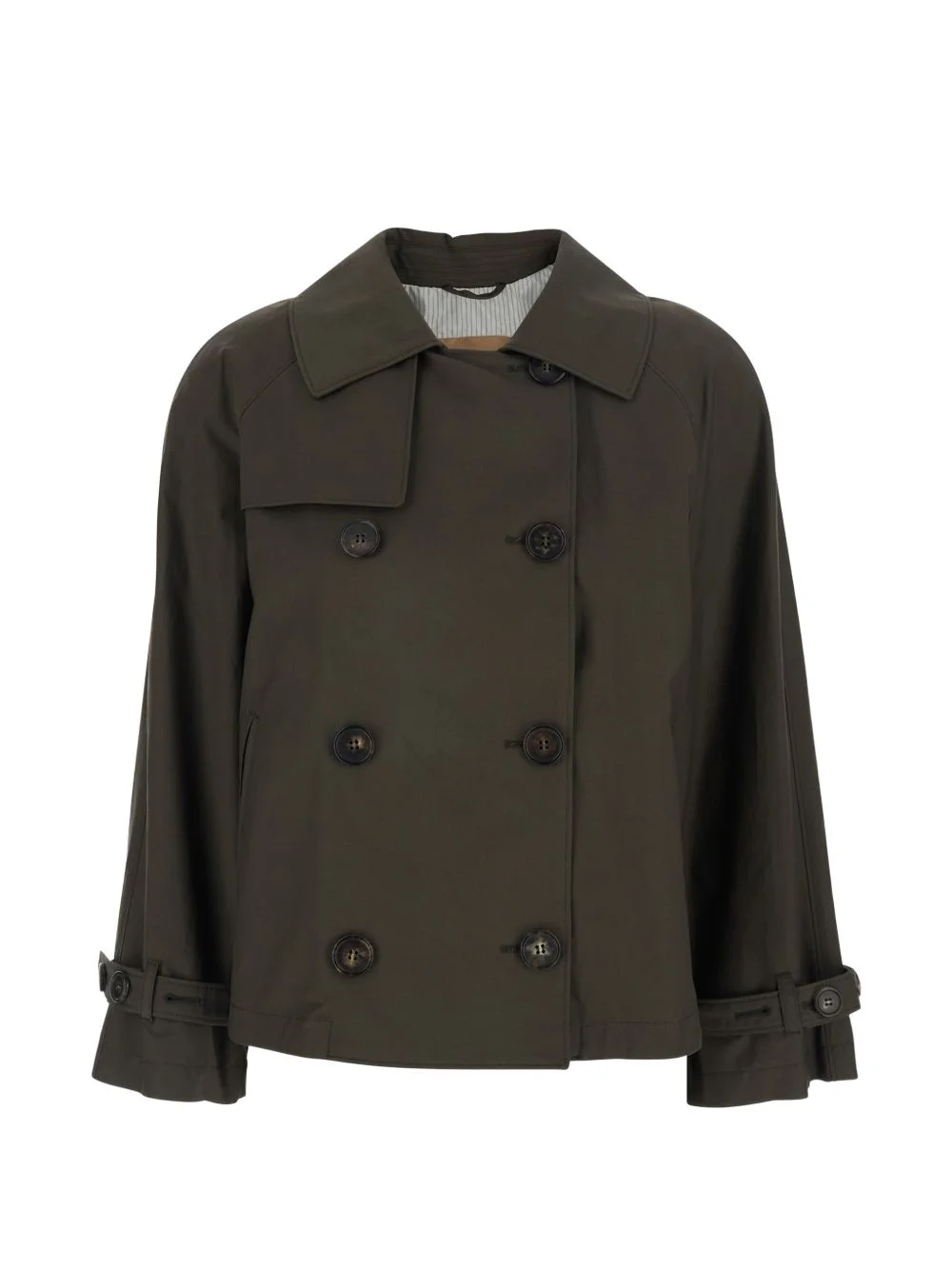 MTCZENO double-breasted trench coat Highlights - Green - Double-breasted - Button fastening - Collar - Cuff tabs - Cropped Imported Composition Outer: Cotton 69%, Polyester 31% Lining: Polyester 100% Washing instructions Machine Wash