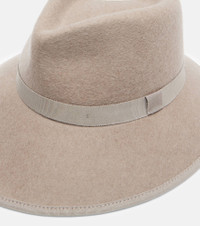 Boasting a rich manufacturing history, Max Mara represents the quintessence of Italian sophistication and expertise. The Mxalocusta fedora hat is made from wool felt and has a grosgrain ribbon trim. Product Details - Material: 100% wool - Care instructions: dry clean - Made in Italy - Color: grey - Designer color name: Sablee - Item color: gray - Lining: 63% acetate, 37% viscose - Trim: 60% cotton, 40% acetate - Details: 100% polyester - Item number: P01115394 Size & Fit - Width of brim 5/10,5cm-2/4" - Circumference size 56= 56cm-22" - Circumference size 57= 57cm-22.5" - Circumference size 58= 58cm-23"