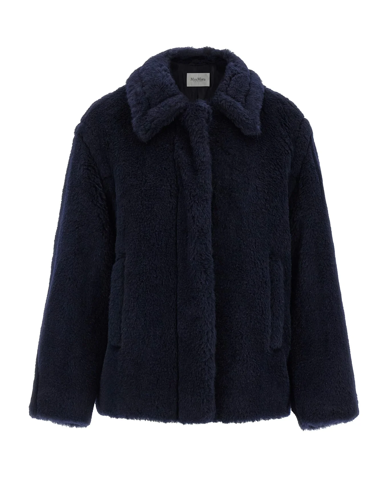 'MxmFuggito' short coat in alpaca and wool Teddy fabric on a silk base with front button closure, shirt collar, pockets, long sleeves, Monogram jacquard fabric lining. Composition: 62% wp, 26% wv, 12% se Made in: Italy Color: Blue Size and fit: - true to size fit Model number: 2611081021600005