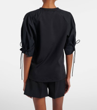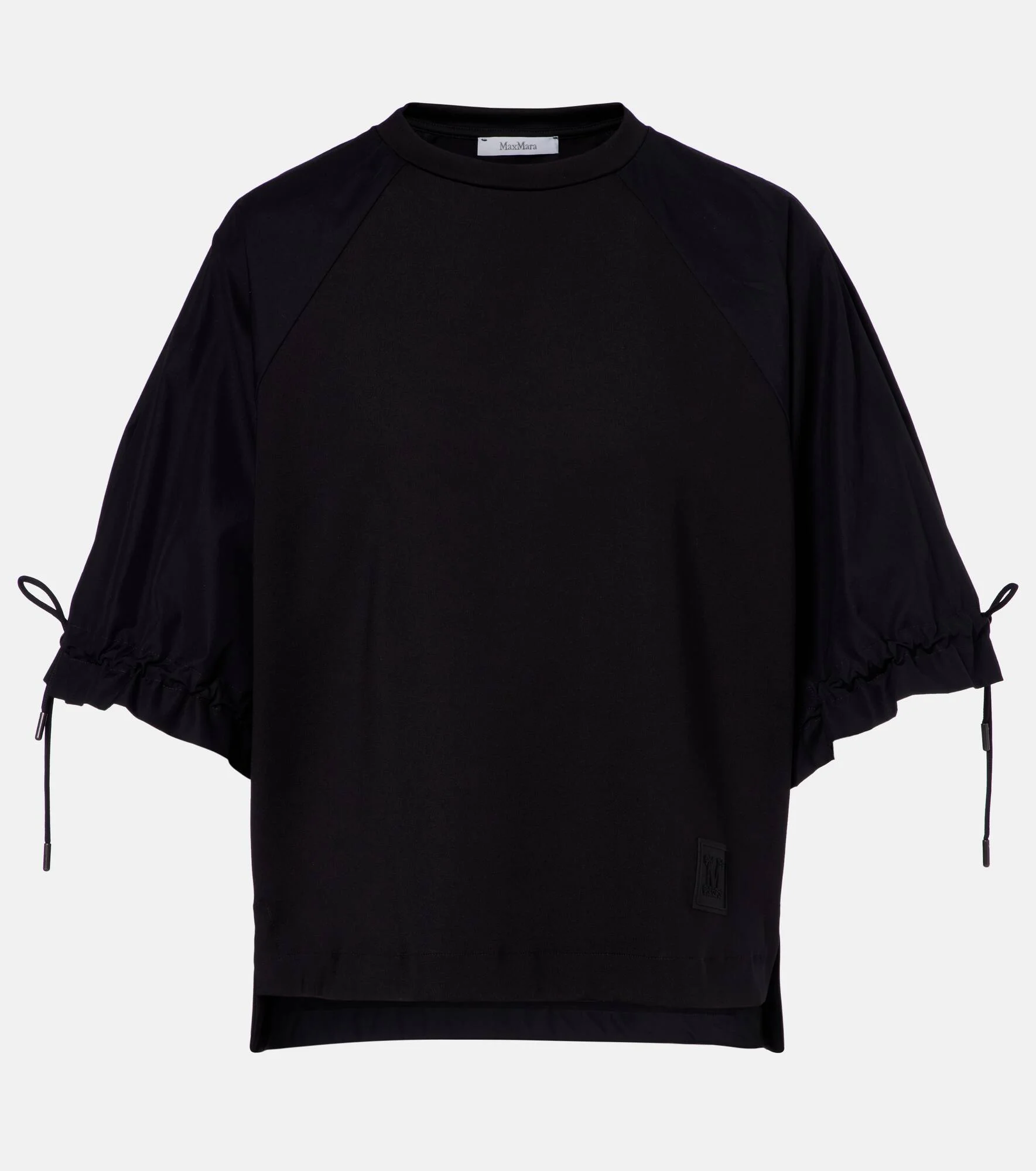 Boasting a rich manufacturing history, Max Mara represents the quintessence of Italian sophistication and expertise. The Mxmwest T-shirt is made to a classic silhouette with short sleeves. Product Details - Material: 48% polyamide, 46% cotton, 6% elastane - Care instructions: hand wash - Made in Romania - Color: black - Designer color name: Nero - Material II: 100% cotton - Contains non-textile parts of animal origin - Drawstring cuffs - Side slits - Item number: P01150200 Size & Fit - True to size - Straight fit - Partly stretchy fabric - Falls below the hip - The model seen in the picture is 178cm-5'10" and wearing a size XS