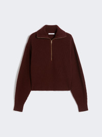 DETAILS Boxy-fit cropped jumper. Fisherman’s rib-knit wool and cashmere jumper Loose fit High neck with metal half zip and custom slider Long sleeves with dropped shoulders COMPOSITION AND CARE 70% wool, 30% cashmere. Hand wash cold (40°c max); do not bleach; do not tumble dry; flat drying in the shade; cool iron; professionally dry clean perchloroethylene - mild process; do not wet clean.; iron with a cloth between.; using neutral detergent. Distributed by Max Mara S.r.l., registered office in Reggio Emilia (Italy), Via Giulia Maramotti 4, 42124 (IT)