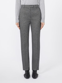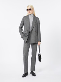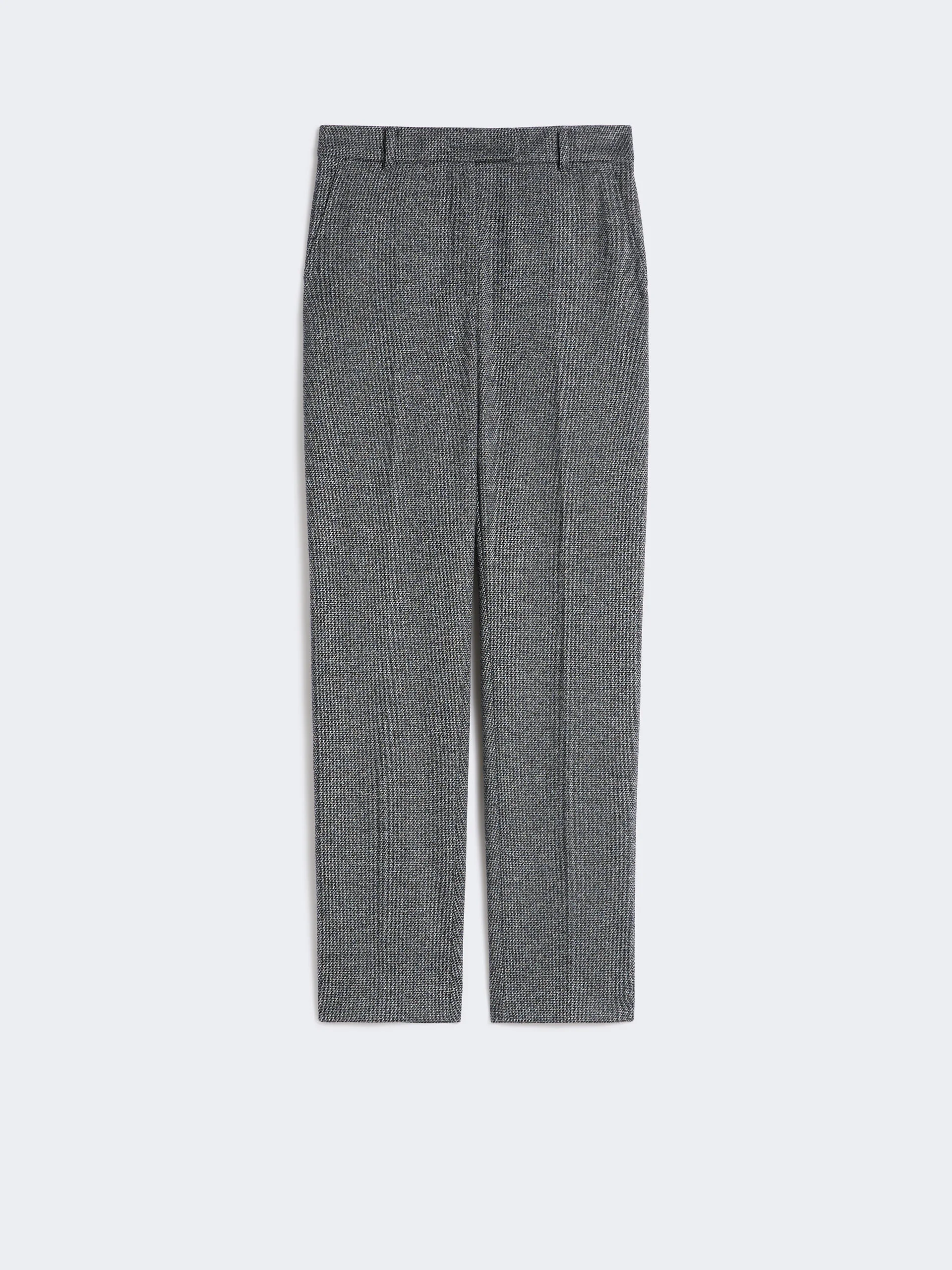DETAILS Long jersey trousers in a cigarette silhouette. Designed with a slim fit and regular waist for an essential shape, complemented by pressed creases, slant pockets and belt loops. Trousers in viscose-cotton blend jersey Slim fit Regular waist High-cut waistband with fly-covered zip and hook-and-bar fastening Side slant pockets Pressed pleat detail and belt loops COMPOSITION AND CARE 40% cotton, 35% viscose, 23% polyester, 2% elastane. Do not wash; do not bleach; do not tumble dry; cool iron; professionally dry clean perchloroethylene - mild process; do not wet clean. Distributed by Max Mara S.r.l., registered office in Reggio Emilia (Italy), Via Giulia Maramotti 4, 42124 (IT)