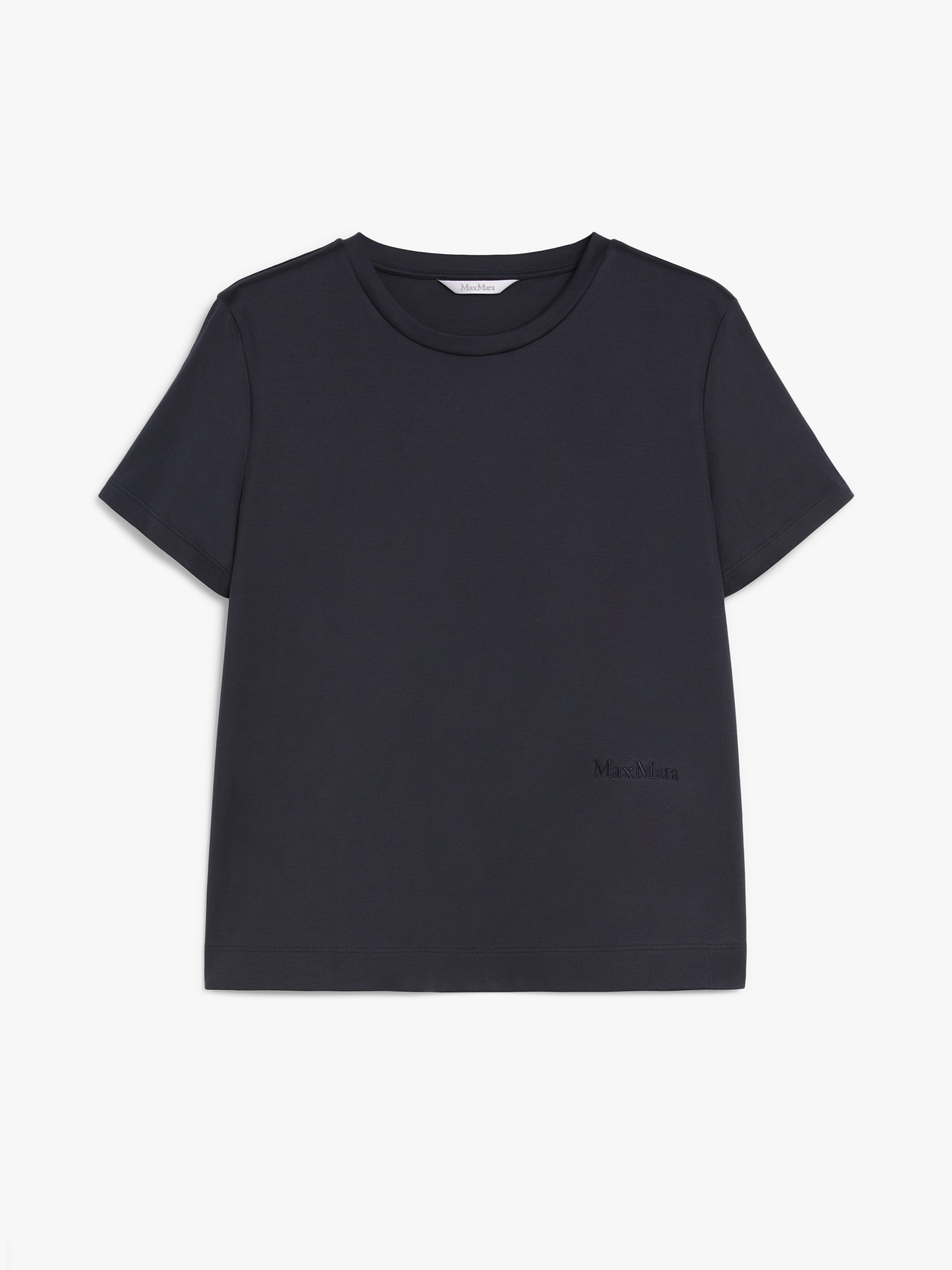 DETAILS Crew-neck, short-sleeved T-shirt, made of soft pure-cotton interlock. Basic style customised with tonal Max Mara logo embroidered on the bottom-left side when worn. COMPOSITION AND CARE Jersey fabric 100% cotton; - exclusive of embroideries. Machine wash cold delicate cycle; do not bleach; do not tumble dry; flat drying in the shade; cool iron; professionally dry clean perchloroethylene - mild process; professional wet cleaning - very mild process.; iron with a cloth between.; using neutral detergent.; turn the articles inside out before washing.; to be ironed on reverse. Distributed by Max Mara S.r.l., registered office in Reggio Emilia (Italy), Via Giulia Maramotti 4, 42124 (IT)