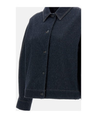 Blue denim jacket The design features a relaxed silhouette with contrast stitching details Point collar Full front button fastening Buttoned cuffs Pockets: Side slit pockets Adjustable waist tabs Composition: 57% Cotton, 36% Po, 07% Elastane Made in: China Color: Blue Model number: 2611911038600002