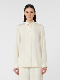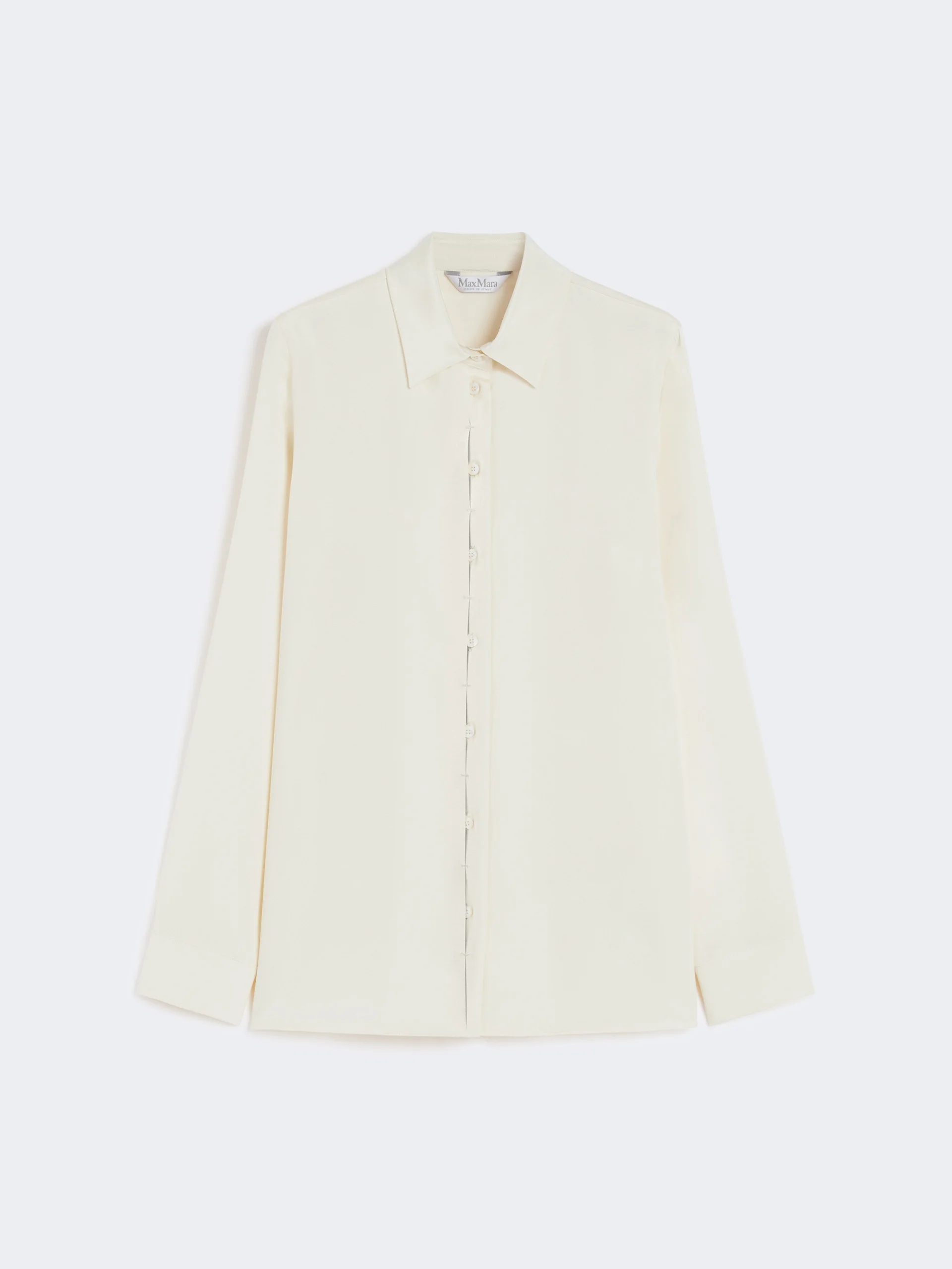 DETAILS Regular fit menswear inspired shirt. Stretch silk cady shirt Classic collar Long set-in sleeves with cuff and side button Mother-of-pearl button front fastening Yoke seam and central pleat on the back Alternating stitch pattern on front placket COMPOSITION AND CARE 93% silk, 7% elastane. Do not wash; do not bleach; do not tumble dry; cool iron; professionally dry clean perchloroethylene - mild process; do not wet clean.; wash the garment while it is fastened.; contains non-textile parts of animal origin. Distributed by Max Mara S.r.l., registered office in Reggio Emilia (Italy), Via Giulia Maramotti 4, 42124 (IT)