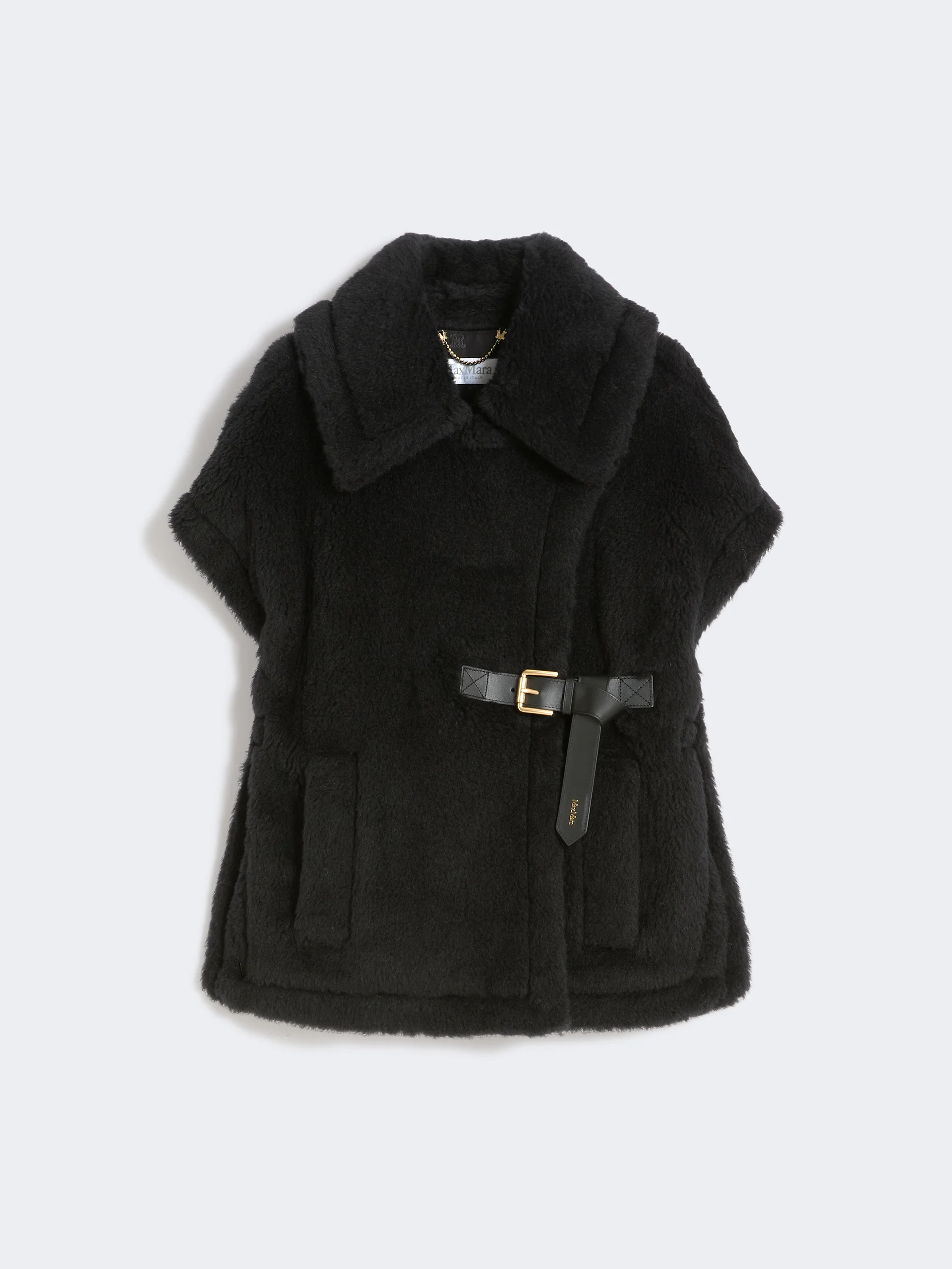 COMPOSITION AND CARE Jersey fabric 62% alpaca, 26% virgin wool, 12% silk; lining 100% viscose; with details in cattle. Do not wash; do not bleach; do not tumble dry; do not iron; professionally dry clean perchloroethylene - mild process; do not wet clean.; do not wash or dry clean by fabric methods. clean only by leather and fur specialists.; contains non-textile parts of animal origin. Distributed by Max Mara S.r.l., registered office in Reggio Emilia (Italy), Via Giulia Maramotti 4, 42124 (IT)