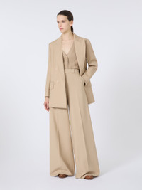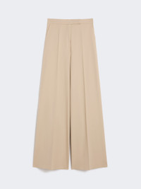 DETAILS Masculine-inspired wide-leg trousers with a slightly high waist. Trousers in double stretch cotton canvas Wide-leg fit Fastening with a wide waistband tab, zip fly and small hook Slant pockets at the sides Trouser crease and darts sewn at the waist back COMPOSITION AND CARE 95% cotton, 5% elastane. Hand wash cold (40°c max); do not bleach; do not tumble dry; line drying in the shade; cool iron; professionally dry clean perchloroethylene - mild process; do not wet clean.; protect buttons before washing. Distributed by Max Mara S.r.l., registered office in Reggio Emilia (Italy), Via Giulia Maramotti 4, 42124 (IT)