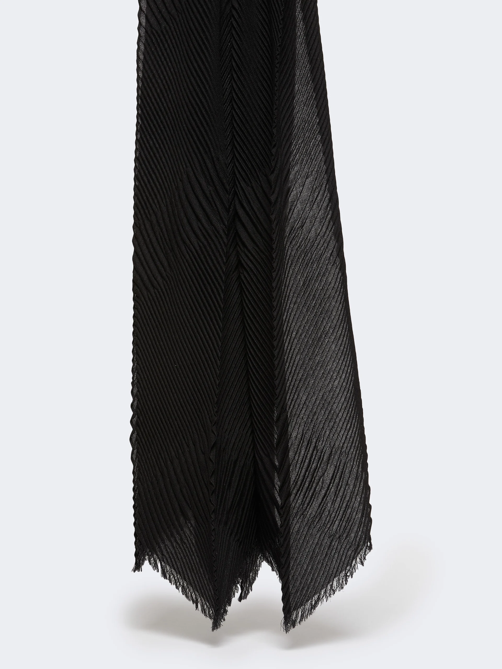 DETAILS Solid colour stole, characterised by a pleated workmanship that adds volume and structure to the texture. Pure cashmere yarn stole Fringed motif at the end Raw-cut edges COMPOSITION AND CARE 85% cashmere, 15% silk. Do not wash; do not bleach; do not tumble dry; do not iron; professionally dry clean perchloroethylene - mild process; do not wet clean.; after washing fix the pleats by ironing them. Distributed by Max Mara S.r.l., registered office in Reggio Emilia (Italy), Via Giulia Maramotti 4, 42124 (IT)