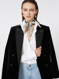 DETAILS Square foulard with all-over print inspired by the collection's sartorial motif. Pure silk twill foulard Delicately stitched edges Measurements: 50 x 50 cm COMPOSITION AND CARE 100% silk. Do not wash; do not bleach; do not tumble dry; cool iron; professionally dry clean perchloroethylene - mild process; do not wet clean. Distributed by Max Mara S.r.l., registered office in Reggio Emilia (Italy), Via Giulia Maramotti 4, 42124 (IT)