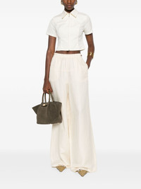 linen-blend wide-leg trousers Highlights - Beige - Elasticated waistband - Wide leg - Side slit pockets Made in Italy Composition Linen/Flax 60%, Silk 40% SIZE & FIT Model measurements Height 5 ft 10 in(1.78 m) Bust/Chest 31.49 in(80 cm) Hips 37 in(94 cm) Waist 23.62 in(60 cm) FittingInformation Designed with a wide-leg cut, these trousers allow for a close fit at the waist and offer a loose and roomy fit over the leg The elasticated waist allows for a comfortable fit Made from a midweight non-stretch fabric, this piece offers minimal elasticity when worn Washing instructions Dry Clean Only