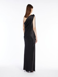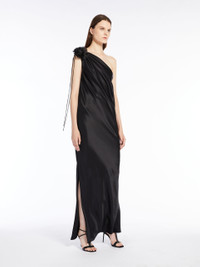 DETAILS Elegant long one-shoulder dress, made of luxurious heavy pure silk satin. The ruffle on the shoulder strap, with a faux drawstring detail with a thin tie with metal tips, creates a soft draped motif at the bottom which highlights the silhouette and skims the hips. Unlined style, finished with a deep side slit. COMPOSITION AND CARE 100% silk. Do not wash; do not bleach; do not tumble dry; cool iron; professionally dry clean perchloroethylene - mild process; do not wet clean.; iron with a cloth between. Distributed by Max Mara S.r.l., registered office in Reggio Emilia (Italy), Via Giulia Maramotti 4, 42124 (IT)