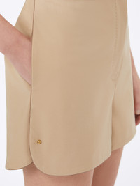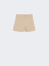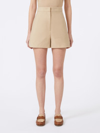 DETAILS Wide-cut shorts with two pleats sewn at the waist back. Stretch cotton double canvas shorts Fastening with a wide waistband tab, zip fly and small hook Side inset pockets Rounded side slits with buttons Finished with contrasting piping COMPOSITION AND CARE Fabric 95% cotton, 5% elastane; lining 95% acetate, 5% elastane; - exclusive of decoration. Do not wash; do not bleach; do not tumble dry; cool iron; professionally dry clean perchloroethylene - mild process; do not wet clean.; put this item into a string bag before washing it.; protect buttons before washing.; turn the articles inside out before washing. Distributed by Max Mara S.r.l., registered office in Reggio Emilia (Italy), Via Giulia Maramotti 4, 42124 (IT)