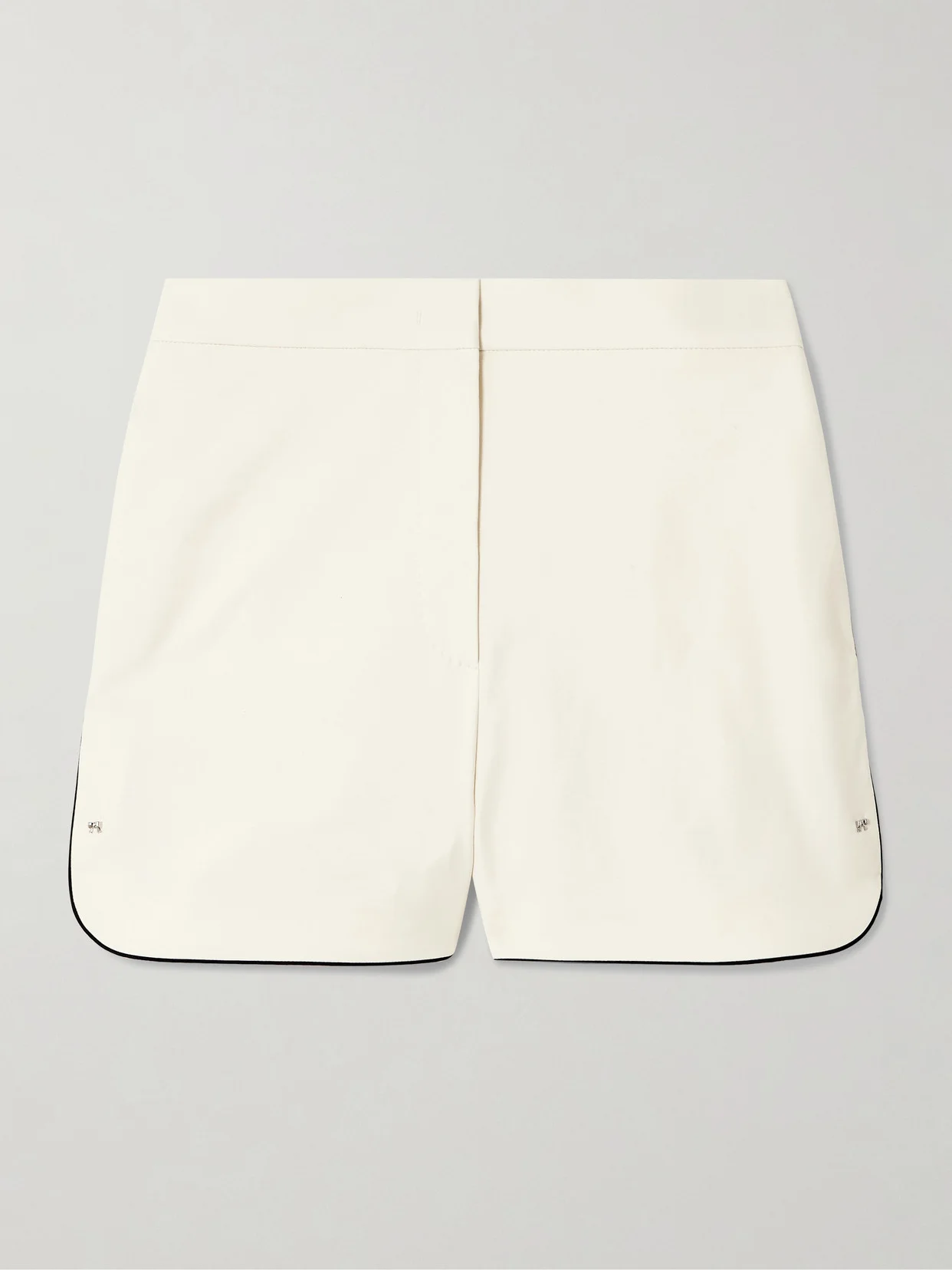 Contrast piping gives Max Mara's 'Orbita' shorts a slightly sporty feel. Tailored from cotton-blend canvas, they sit high on the waist and have rounded side slits embellished with silver-tone bows. Wear yours with a tucked-in tank.