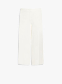 DETAILS Trousers in soft technical cotton jersey, featuring a straight-leg silhouette, trouser crease and French pockets on the sides, finished with raw edges. Fastening with a wide waistband tab, zip fly and small hook. COMPOSITION AND CARE 52% cotton, 38% elastomultiester, 10% elastane. Hand wash cold; do not bleach; do not tumble dry; flat drying in the shade; cool iron; professionally dry clean perchloroethylene - mild process; do not wet clean.; iron with a cloth between.; using neutral detergent.; don’t rub. Distributed by Max Mara S.r.l., registered office in Reggio Emilia (Italy), Via Giulia Maramotti 4, 42124 (IT)
