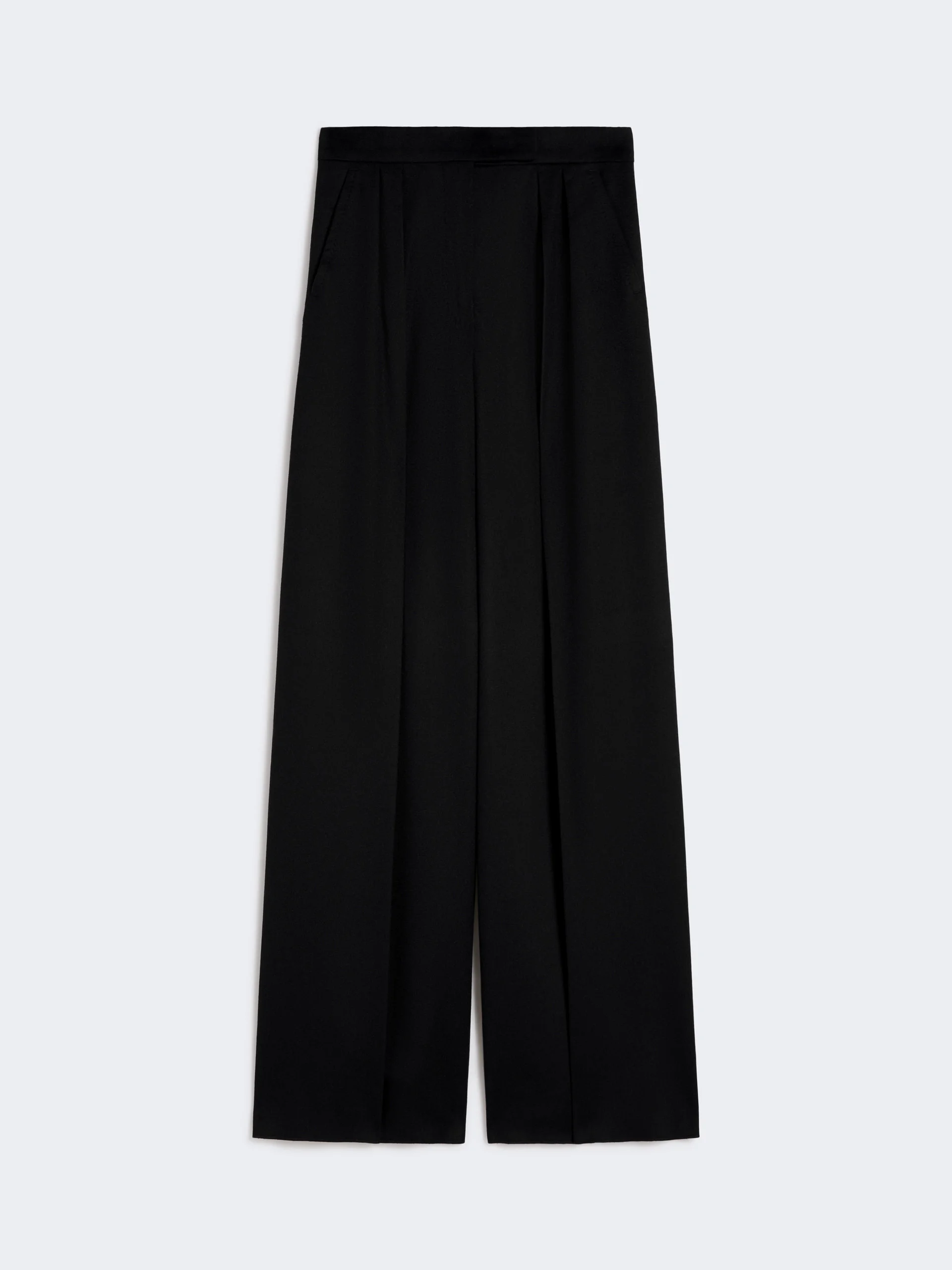 DETAILS Flared trousers with wide leg and double pleats at the waist front. Lightweight pure zibeline camel drap trousers Wide leg Fastening with a wide waistband tab, zip fly and small hook Slant pockets at the sides Trouser crease Back waist darts COMPOSITION AND CARE 100% camelwool. Do not wash; do not bleach; do not tumble dry; cool iron; professionally dry clean perchloroethylene - mild process; do not wet clean.; protect buttons before washing. Distributed by Max Mara S.r.l., registered office in Reggio Emilia (Italy), Via Giulia Maramotti 4, 42124 (IT)