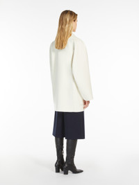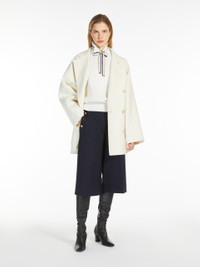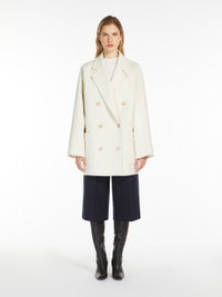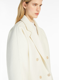 DETAILS Short double-breasted coat in a luxurious, hand-sewn melange wool and cashmere melange double cloth. Unlined, featuring a straight silhouette with a classic lapel collar, long raglan sleeves and front patch pockets. Front fastening with customised buttons. COMPOSITION AND CARE Fabric 70% virgin wool, 30% cashmere; - except joining thread. Do not wash; do not bleach; do not tumble dry; cool iron; professionally dry clean perchloroethylene - mild process; do not wet clean.; wash the garment while it is fastened.; do not iron the buttons.; protect buttons before washing.; contains non-textile parts of animal origin. Distributed by Max Mara S.r.l., registered office in Reggio Emilia (Italy), Via Giulia Maramotti 4, 42124 (IT)