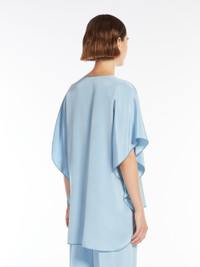 DETAILS Blouse in luxurious heavy pure silk crepe de Chine, featuring a fluid half-circle silhouette, gently cinched at the waist with contrasting stitching details on the sides, short flounced sleeves, and a wide crew neck. Asymmetrical rounder hem that is longer at the back. COMPOSITION AND CARE 100% silk. Do not wash; do not bleach; do not tumble dry; cool iron; professionally dry clean perchloroethylene - mild process; do not wet clean.; iron with a cloth between. Distributed by Max Mara S.r.l., registered office in Reggio Emilia (Italy), Via Giulia Maramotti 4, 42124 (IT)
