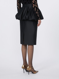 DETAILS Pencil skirt crafted in couture duchesse fabric, featuring a balloon yoke detail at the waist that creates volume. Classic slim-fit design completed with a back slit. Couture duchesse skirt Pencil silhouette with close-fitting line Regular waistline Invisible zip fastening at the back Central rear slit Fully lined model COMPOSITION AND CARE Fabric 100% polyester; lining 100% cotton. Do not wash; do not bleach; do not tumble dry; cool iron; professionally dry clean perchloroethylene - mild process; do not wet clean. Distributed by Max Mara S.r.l., registered office in Reggio Emilia (Italy), Via Giulia Maramotti 4, 42124 (IT)