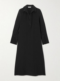 Max Mara's designs are imbued with a sense of elevated effortlessness. Made from a lustrous silk-blend, this 'Ossola' dress has a floaty shape with exaggerated cuffs and an open polo collar. Style yours with classic pumps. Size & Fit - Fits true to size, take your normal size - Cut for a relaxed fit - Lightweight, stretchy fabric - Model is 180cm/ 5'11" and is wearing a UK 8 Model measurements: - Bust: 86cm/ 34" - Waist: 65cm/ 25.5" - Hip: 90cm/ 35.5" Details & Care - Black silk-blend - Slips on - 91% silk, 9% elastane - Unlined - Dry clean