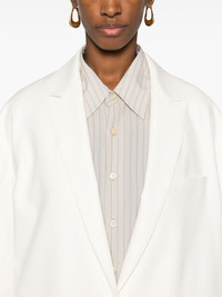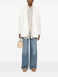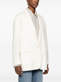 Monica oversized blazer Highlights - Cream white - Stretch-cotton - Tonal stitching - Notched lapels - Drop shoulder - Long sleeves - Faux-buttoned cuffs - Chest welt pocket - Two front flap pockets - Central rear vent - Full lining - Front button fastening Made in Italy Composition Lining: Viscose 52%, Cotton 48% Outer: Cotton 95%, Elastane 5% SIZE & FIT Model measurements Height 5 ft 10 in(1.77 m) Bust/Chest 29.92 in(76 cm) Hips 34.25 in(87 cm) Waist 22.83 in(58 cm) FittingInformation Designed to be unstructured, offering a loose fit throughout Made from a midweight fabric This piece fits true to size – take your usual size
