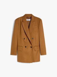 DETAILS Double-breasted blazer made of luxurious, wool, mohair and silk canvas. Lined, featuring an unstructured fit with peak lapels, a breast pocket and double welt pockets with flap on the front. Finished with small slits and side buttons on the sleeves, tailored pick stitch and double vent on the back. Button fastening. COMPOSITION AND CARE Fabric 71% virgin wool, 18% mohair, 11% silk; lining 65% acetate, 35% polyester. Do not wash; do not bleach; do not tumble dry; cool iron; professionally dry clean perchloroethylene - mild process; do not wet clean.; do not iron the buttons.; protect buttons before washing.; contains non-textile parts of animal origin. Distributed by Max Mara S.r.l., registered office in Reggio Emilia (Italy), Via Giulia Maramotti 4, 42124 (IT)