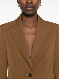 Palchi blazer Highlights - Foliage brown - Front button fastening - Buttoned cuffs - English rear vents - Shoulder pads Made in Italy Composition Lining: Acetate 65%, Polyester 35% Outer: Virgin Wool 100% SIZE & FIT Model measurements Height 5 ft 11 in(1.8 m) Bust/Chest 32.67 in(83 cm) Hips 36.22 in(92 cm) Waist 24.4 in(62 cm) FittingInformation Designed for a slim fit that sits just away from the body offering a close yet comfortable fit The internal shoulder pads offer a structured shape Made from a midweight non-stretch fabric