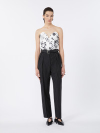 DETAILS Sweetheart-neck corset top featuring draped detail on the front. Top in printed pure silk twill fabric Slim fit Zip fastening at the back The shoulder straps can be removed via the clasps and internal slits Lined model COMPOSITION AND CARE Fabric 100% silk; lining 100% cotton. Do not wash; do not bleach; do not tumble dry; cool iron; professionally dry clean perchloroethylene - mild process; do not wet clean.; protect zipper tongue and slide before cleaning.; protect the metal rings before washing. Distributed by Max Mara S.r.l., registered office in Reggio Emilia (Italy), Via Giulia Maramotti 4, 42124 (IT)