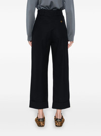 Palio trousers Highlights - Navy blue - Concealed side hook and zip fastening - Two diagonal pockets to the sides - Rear patch pocket Made in Italy Composition Cotton 100% SIZE & FIT Model measurements Height 5 ft 10 in(1.78 m) Bust/Chest 33.46 in(85 cm) Hips 36.22 in(92 cm) Waist 23.22 in(59 cm) FittingInformation Designed for a tapered fit, these trousers allow for a close fit at the waist and a loose unrestricted fit over the leg with a closer fit towards the ankle Made from a midweight non-stretch fabric