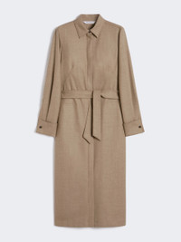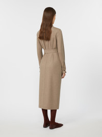 DETAILS Long shirt dress with matching belt to accentuate the silhouette. Stretch cashmere foule dress Slim-fit lines Shirt collar Long, set-in sleeves with high cufflink cuffs Concealed front fastening that runs the length of the garment Side inset pockets Unlined COMPOSITION AND CARE 96% cashmere, 4% elastane. Do not wash; do not bleach; do not tumble dry; cool iron; professionally dry clean perchloroethylene - mild process; do not wet clean.; wash the garment while it is fastened.; do not iron the buttons.; protect buttons before washing.; turn the articles inside out before washing.; remove the cufflinks before washing.; contains non-textile parts of animal origin. Distributed by Max Mara S.r.l., registered office in Reggio Emilia (Italy), Via Giulia Maramotti 4, 42124 (IT)