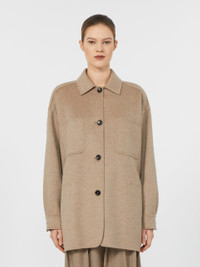 DETAILS Shirt-cut jacket, finished with tailored pick stitch and patch pockets on the chest. Hand-stitched, lightweight, pure cashmere double drap jacket Loose fit Shirt collar and cuffs Long sleeves with dropped shoulders Front fastening with visible buttons Side inset pockets Unlined COMPOSITION AND CARE Fabric 100% cashmere; - except joining thread. Do not wash; do not bleach; do not tumble dry; cool iron; professionally dry clean perchloroethylene - mild process; do not wet clean.; wash the garment while it is fastened.; do not iron the buttons.; protect buttons before washing.; turn the articles inside out before washing.; contains non-textile parts of animal origin. Distributed by Max Mara S.r.l., registered office in Reggio Emilia (Italy), Via Giulia Maramotti 4, 42124 (IT)