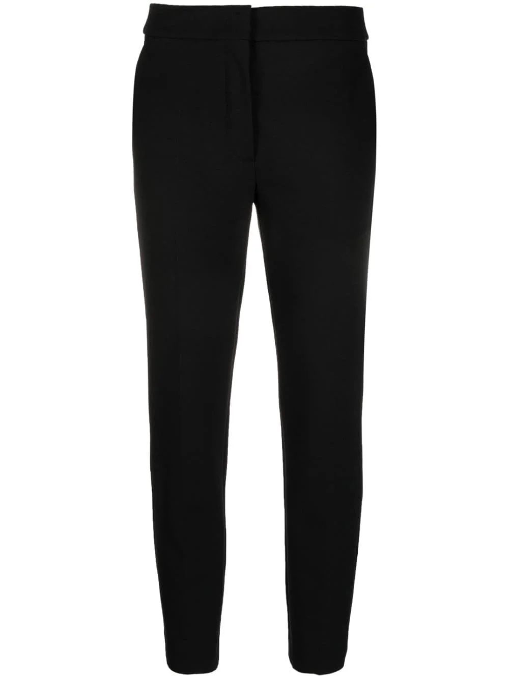 high-waisted cropped trousers Highlights - Black - High-waisted - Concealed front fastening - Cropped leg - Two side slash pockets Made in Italy Composition Viscose 84%, Polyamide 11%, Elastane 5% SIZE & FIT Model measurements Height 5 ft 11 in(1.8 m) Bust/Chest 33.07 in(84 cm) Hips 37.4 in(95 cm) Waist 25.19 in(64 cm) FittingInformation Designed for a slim fit, these trousers offer a close fit at the waist, allowing a comfortable close fit and some movement over the leg Cropped in length Made from a midweight stretch fabric, this piece offers elasticity and flexibility when worn This piece fits true to size – take your usual size