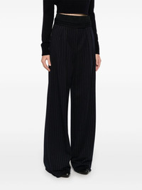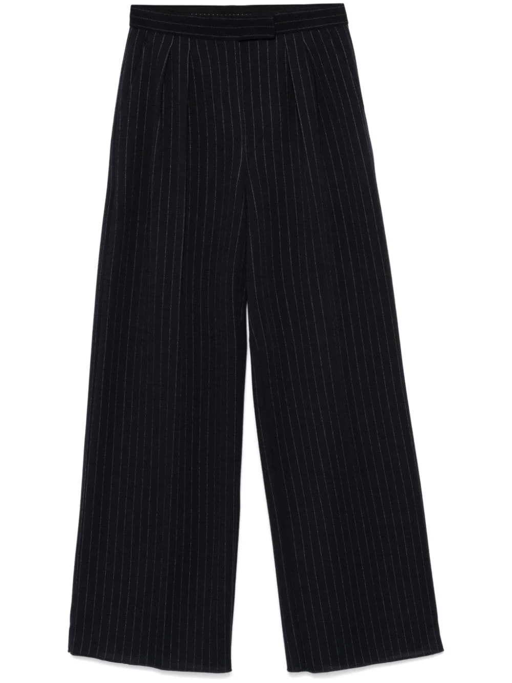 pinstriped trousers Highlights - Navy blue - Virgin wool blend - Tailored design - Pinstripe pattern - Concealed front button, hook and zip fastening - Pleat detailing - Two side slit pockets - Detachable inner shorts - Straight hem - Wide leg Made in Italy Composition Acetate 89%, Virgin Wool 79%, Viscose 21%, Silk 6%, Polyamide 5% SIZE & FIT Model measurements Height 5 ft 9 in(1.75 m) Bust/Chest 31.88 in(81 cm) Hips 34.64 in(88 cm) Waist 24.01 in(61 cm) FittingInformation Designed with a wide-leg cut, these trousers allow for a close fit at the waist and offer a loose and roomy fit over the leg The unfinished hems allow for the length to be altered Made from a midweight non-stretch fabric, this piece offers minimal elasticity when worn