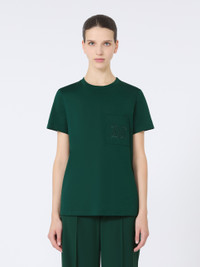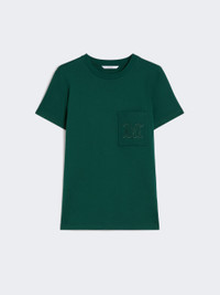 DETAILS Straight-cut T-shirt with chest pocket and matching embroidered M Monogram detail. Pure cotton jersey T-shirt Regular fit Ribbed neckline Short set-in sleeves COMPOSITION AND CARE Jersey fabric 100% cotton; - exclusive of embroideries. Machine wash cold delicate cycle; do not bleach; do not tumble dry; flat drying in the shade; cool iron; professionally dry clean perchloroethylene - mild process; professional wet cleaning - very mild process.; iron with a cloth between.; using neutral detergent.; turn the articles inside out before washing.; to be ironed on reverse. Distributed by Max Mara S.r.l., registered office in Reggio Emilia (Italy), Via Giulia Maramotti 4, 42124 (IT)