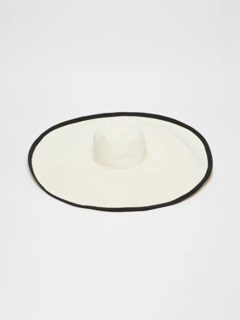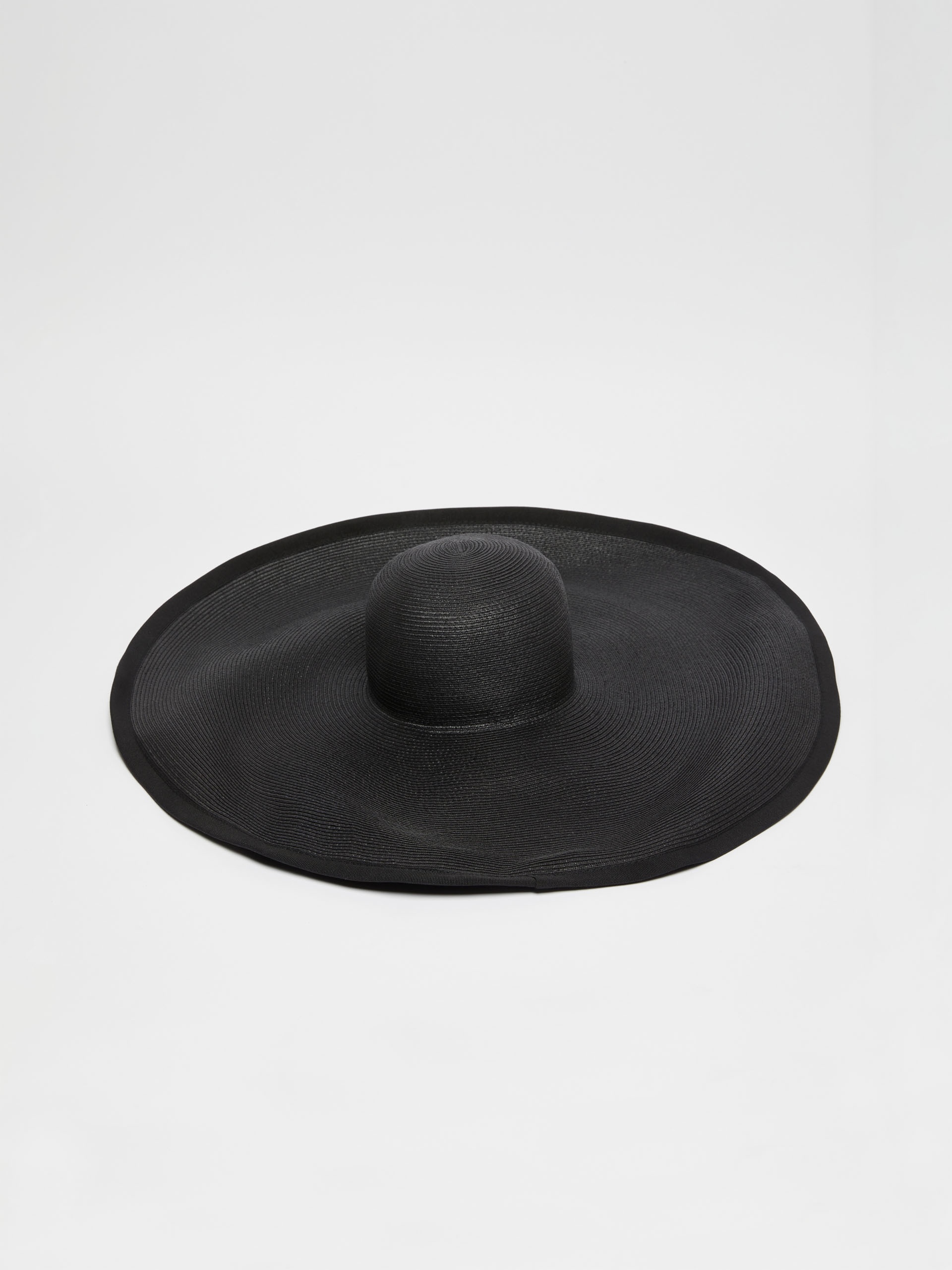 DETAILS Very elegant, feminine wide-brimmed hat made of paper yarn. Embellished with grosgrain edges in the same colours. COMPOSITION AND CARE 75% paper, 25% polyester. Do not wash; do not bleach; do not tumble dry; do not iron; do not dry clean; do not wet clean. Distributed by Max Mara S.r.l., registered office in Reggio Emilia (Italy), Via Giulia Maramotti 4, 42124 (IT)